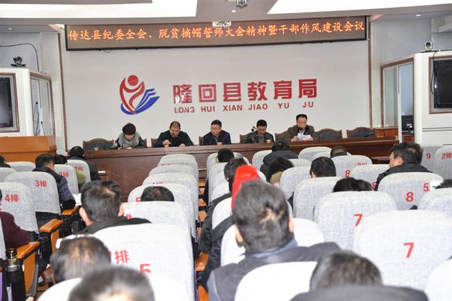 2月18日下午,隆回县教育局召开干部职工会议,传达学习县纪委全会、脱贫摘帽誓师大会暨干部作风建设会议。县纪委监委驻教育局纪检监察组、局全体干部职工参加会议。会议由教育局党委副书记、副局长向跃主持。