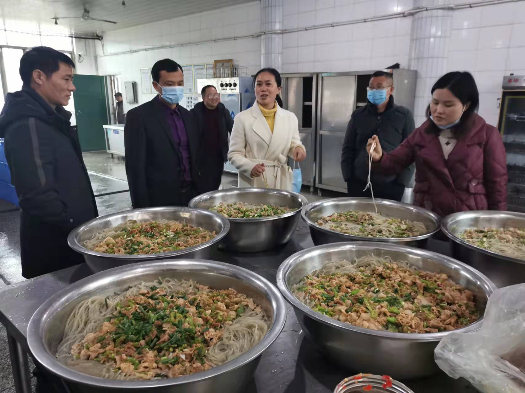 1月4日,县人大常委会副主任胡江南带领人大教科文卫委主任周英华、县政府办副主任刘飞云,检查督导学校、配送企业食品安全工作。县教育局勤工俭学服务中心谭宗厚、彭少国陪同督导检查。