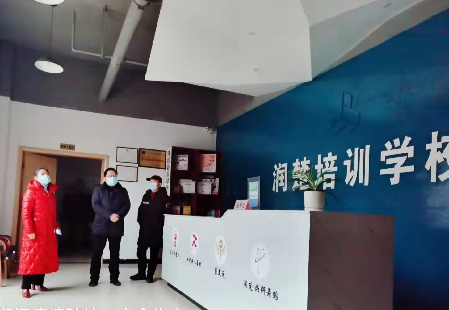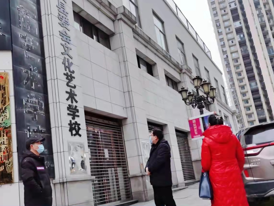 图为刘向华在润楚培训学校、爱会文化艺术学校等培训机构进行督查。