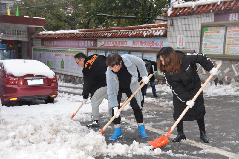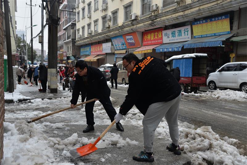 在扫雪现场,大家不畏寒冷,不怕辛苦,齐心协力,边铲边扫,认真清理了局机关院内及周边、文体路道路及人行道的积雪。现场热火朝天,大家干劲十足,为居民扫出了一条“平安路”和“温暖路”。
