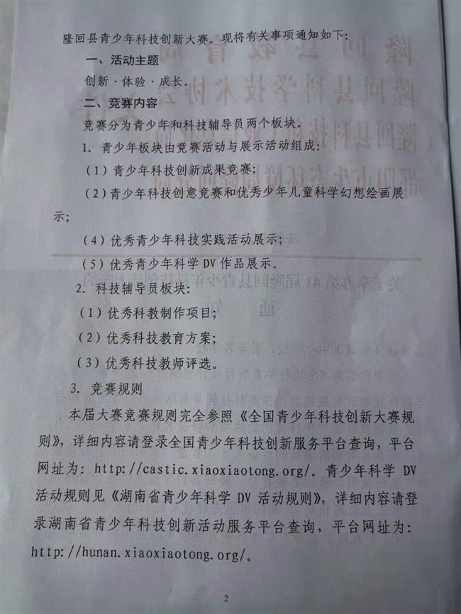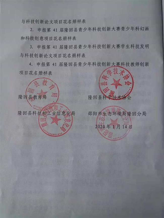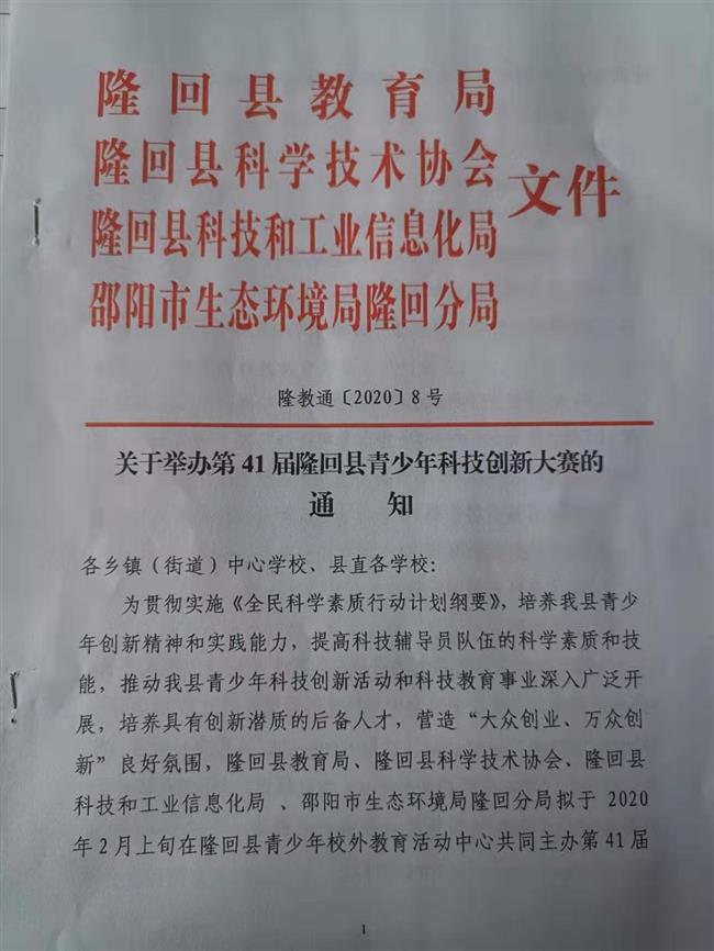 隆教通〔2020〕8号关于举办第41届隆回县青少年科技创新大赛的通知