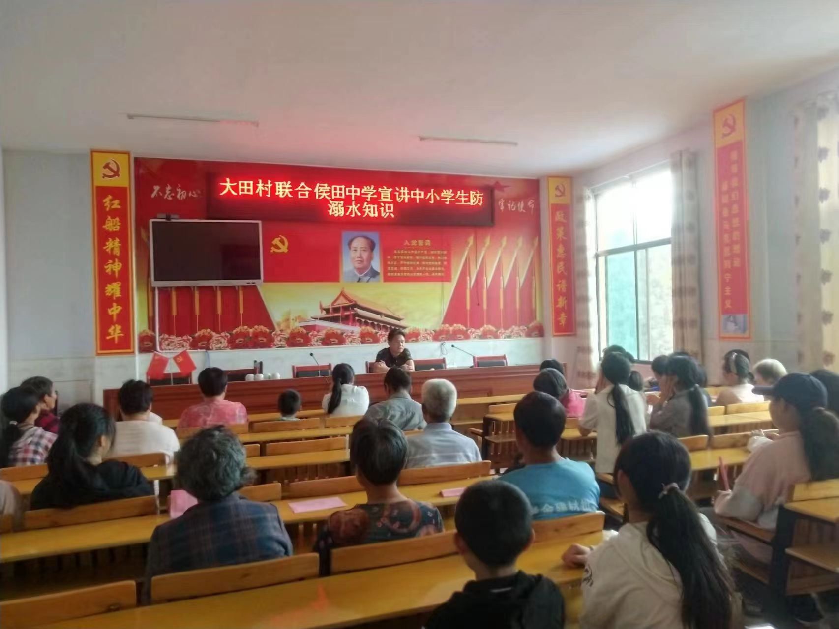 6月10日,高平镇大田村联合高平镇侯田中学在大田村活动中心召开了大田村中小学生家长或监护人预防学生溺水安全教育会议,大田村支部书记袁士平主持了村校联动防溺水会议。会上,大田村支书袁士平、侯田中学政教主任蒋文平先后发言,袁士平、蒋文平忠告各位学生家长或监护人要高度重视预防学生溺水工作,切实增强做好预防学生溺水工作的责任感与紧迫感,时刻绷紧安全教育之弦,深刻吸取以往大田村陆家冲水库发生的学生溺水安全事故的教训,严防溺水事情再发生,为创建平安大田村贡献力量。袁士平、蒋文平还就学生交通安全、食品安全、消防安全、防一氧化碳中毒等进行了宣传教育。会议强调,村委会、学校、家庭形成合力,齐抓共管,加大预防学生溺水宣传力度,营造全社会关心防溺水安全良好氛围,做实做细防溺水举措,消除安全隐患。高平镇大田村、侯田中学联合共筑防学生溺水安全网,进一步提高了学生和家长或监护人的安全意识,为学生安全度过即将到来的暑假将起警示和保驾护航的作用。