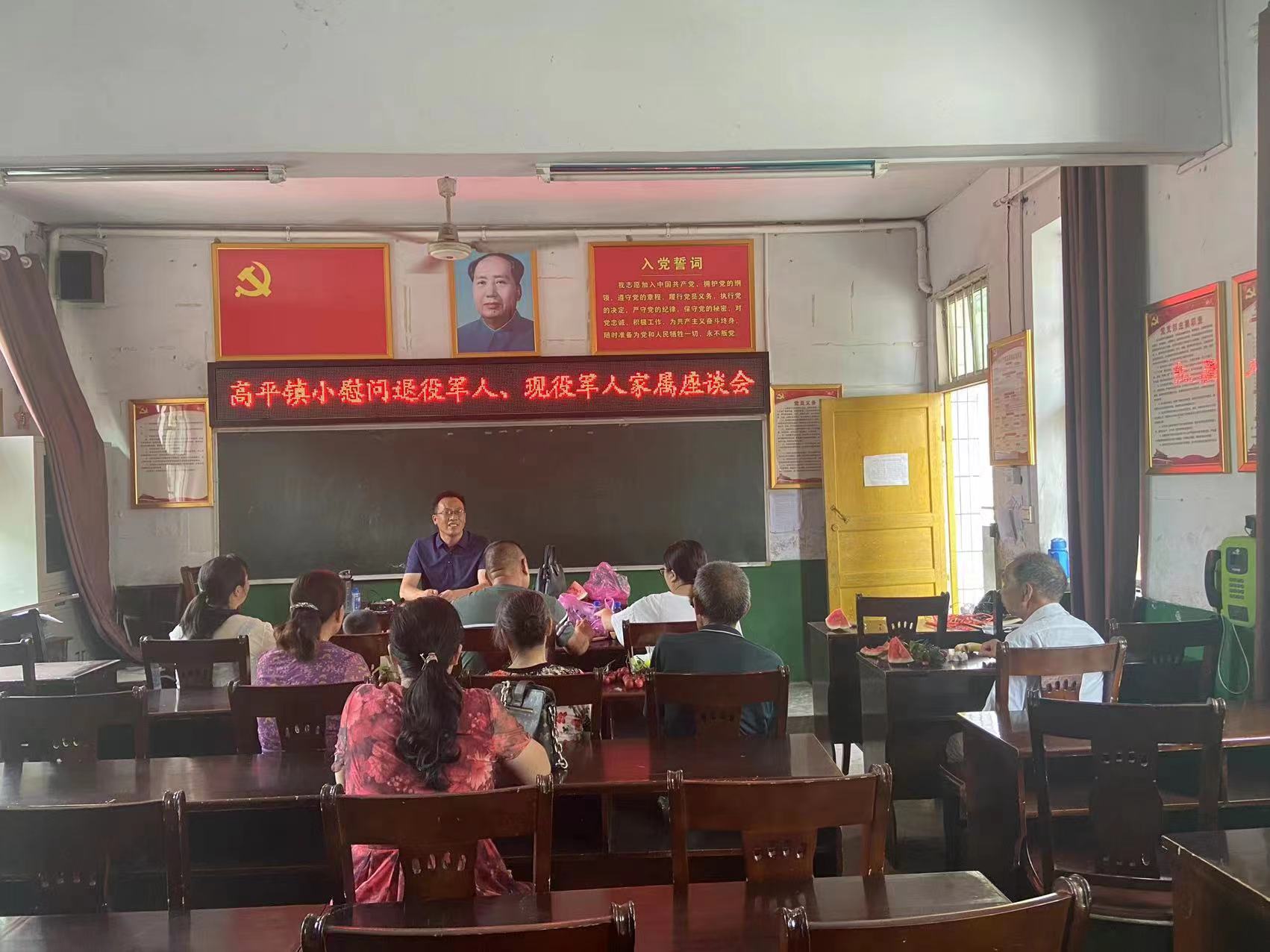 8月1日,高平镇中心小学校长周航召集学校退役军人教师与现役军人家属在学校会议室召开了慰问座谈会。会上,周航校长首先对退役军人与现役军人家属表示了节日的问候与致敬。周航称赞军人是最可爱的人,赞扬学校退役军人退伍不退志,在教育战线上挥洒汗水为学校发展做出了积极贡献;赞扬军嫂乐当军人贤内助,军功章呀有军嫂的一半。会上,学按领导给退役军人教师与军嫂每位发了300元慰问金,勉励大家继续努力,为学校的发展再立新功。退役军人教师与军嫂们纷纷表示要为教育事业和支持兵哥尽职责,有“兵哥教师"之称的杨俊表示,一定干好本职工作,以实际行动喜迎党的二十大胜利召开。