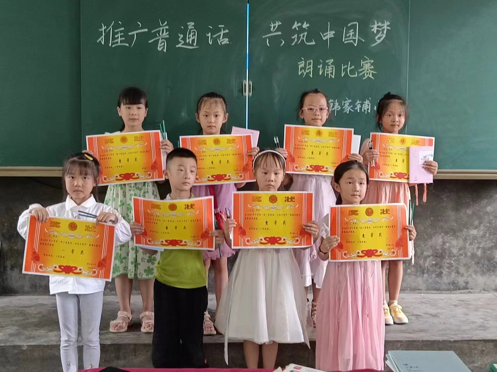 为了进一步增强了全体学生的语言文字规范意识,9月15日上午,羊古坳镇韩家铺小学组织开展了“推广普通话,共筑中国梦”朗诵比赛活动。为确保朗诵比赛顺利开展,学校制订了详细的方案,每位参赛选手以班为单位提前进行了认真地准备。比赛时,参赛选手个个精神饱满,语音清晰准确,仪表得体大方具有感染力。那坚定的眼神、铿锵有力的声调,充沛饱满的感情,无不体现出同学们的骄傲与自信。每位选手作品朗读结束,评委老师当即进行面对面的点评,并一对一进行朗读技巧的指导。经过紧张激烈的角逐,共评出了一等奖5名,二等奖8名,三等奖8名,颁发了奖状和奖品。