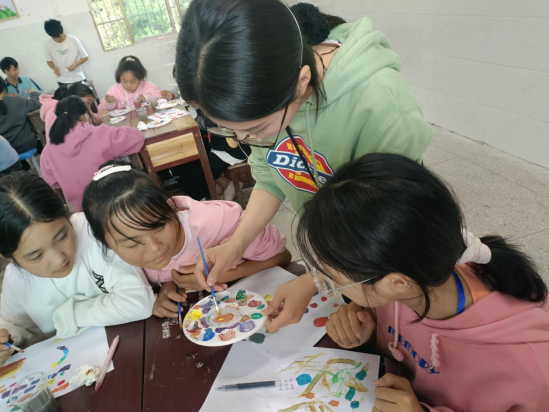 参与美术社团课程的阮诗定老师课前精心为同学准备了美术材料,有颜料,调色板,水彩笔,绘画石膏等等。上课非常有耐心的给每位同学讲解。并且进行一一辅导,课后也喜欢和同学们进行交流,谈谈她们课上的一些感受,以及希望学习一些什么美术知识,了解了这些,阮老师会根据同学们的实际情况对社团活动的课程进行调整。