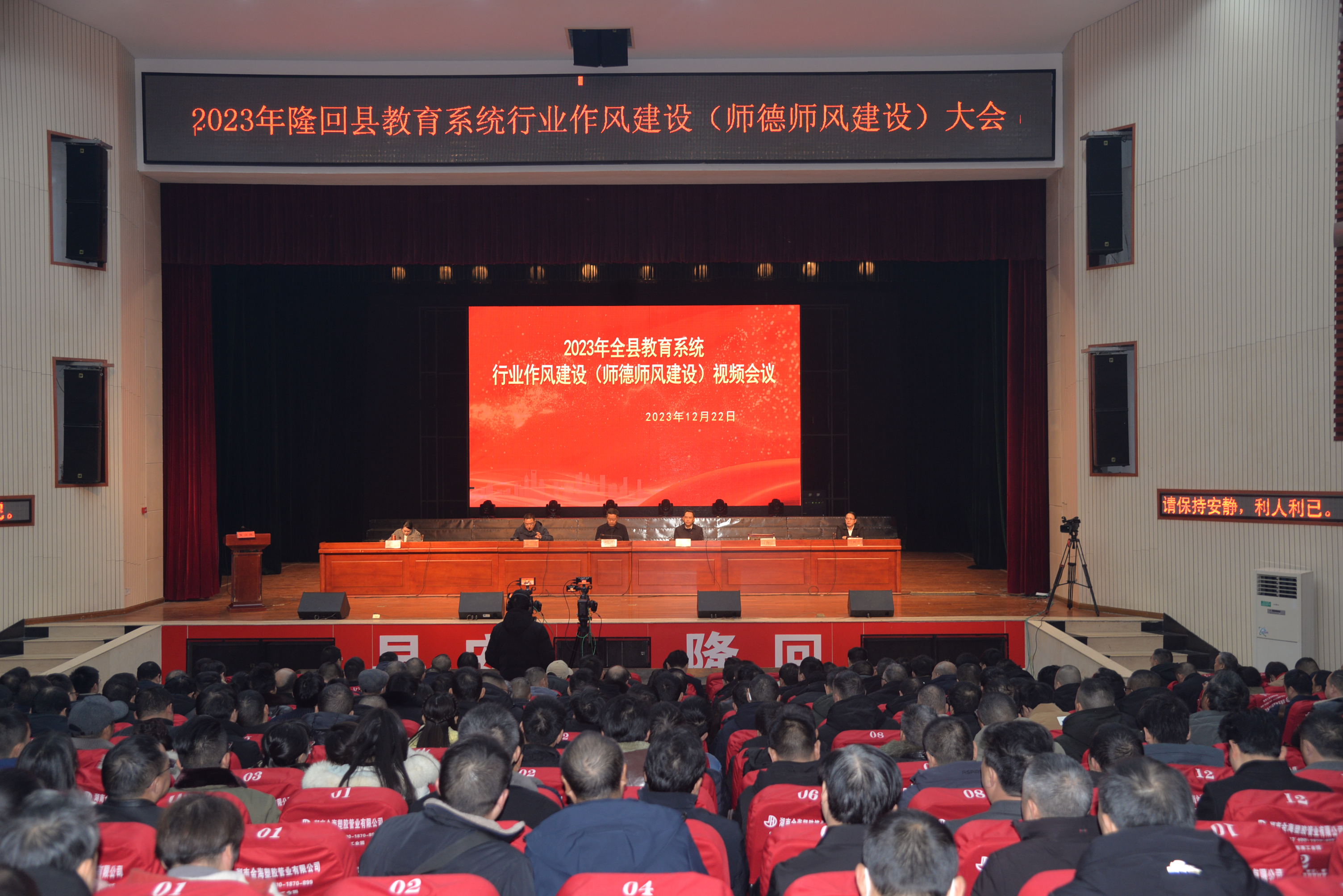 1222日,隆回县召开2023年全县教育系统行业作风建设(师德师风建设)会议,县委书记刘军出席会议并讲话。他强调,要深入学习贯彻习近平总书记关于教育工作的重要论述,持之以恒抓好师德师风建设,全力以赴推动教育事业高质量发展。县领导陆海涛、雷勇、刘海秋、胡江南、刘祖中出席会议。
