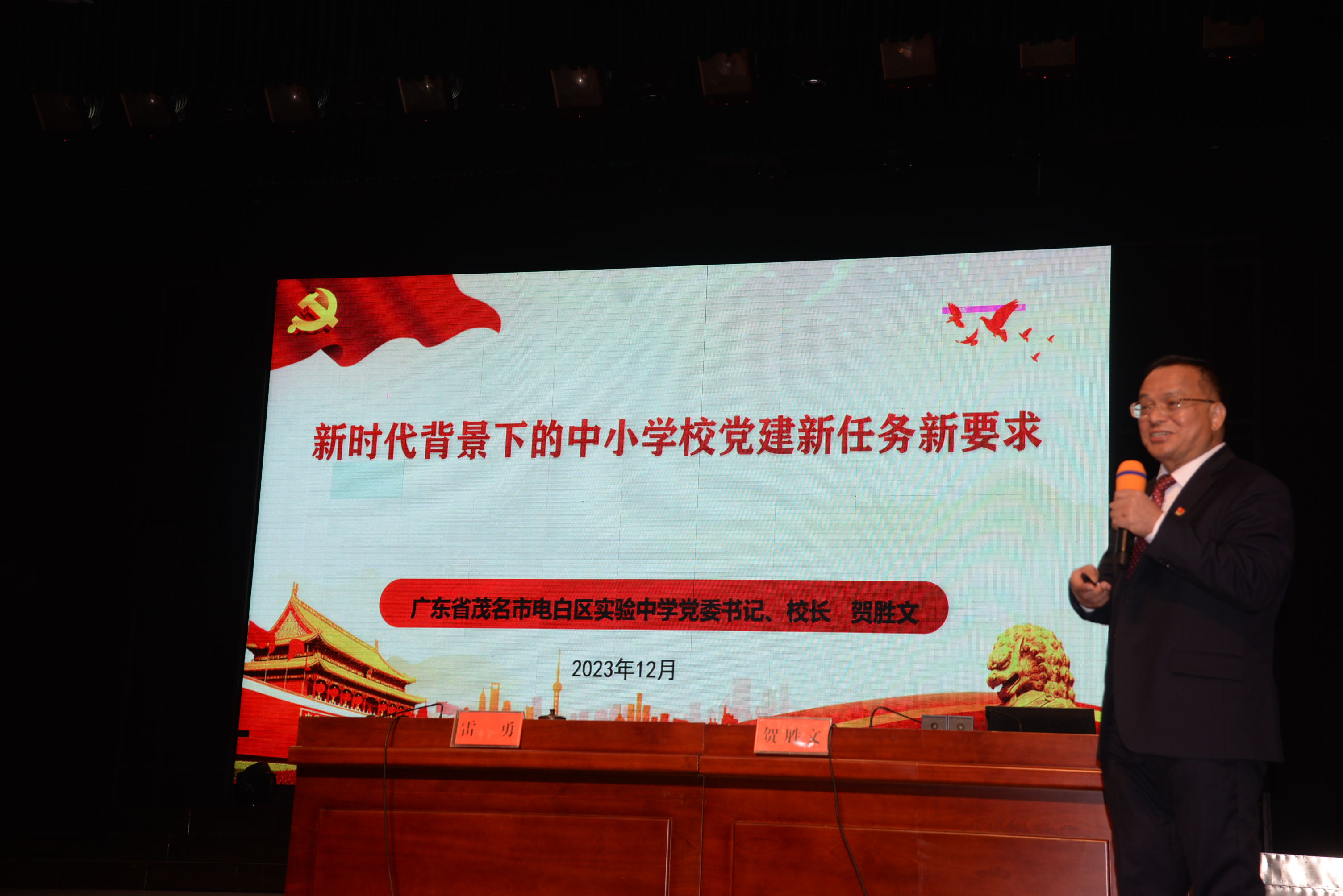 会议邀请了广东省茂名市电白区实验中学党委书记、校长贺胜文作《新时代背景下中小学校党建工作新任务新要求》为主题的专题讲座,从党建工作新任务、新要求、新成就、新气象等方面,结合电白区实验中学实际,上了一堂生动的党建课和师德课。会议还总结了全县师德师风建设工作情况。