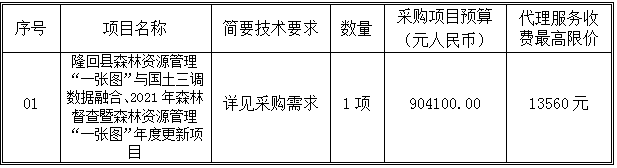 1、采购项目名称:隆回县森林资源管理“一张图”与国土三调数据融合、2021年森林督查暨森林资源管理“一张图”年度更新项目