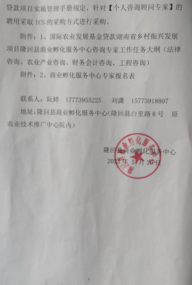 隆回县农发基金贷款项目商业孵化服务中心聘请相关咨询专家公告