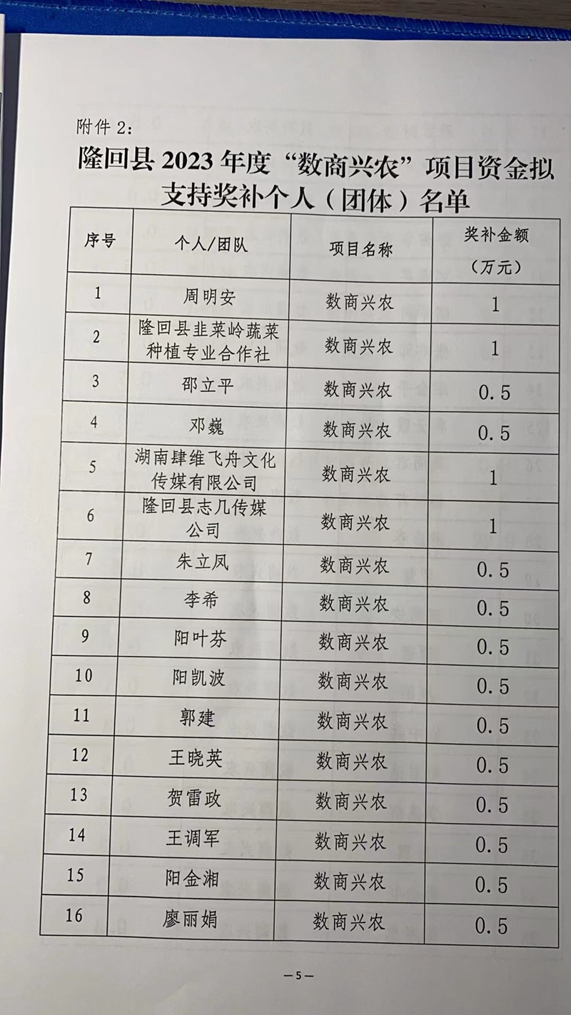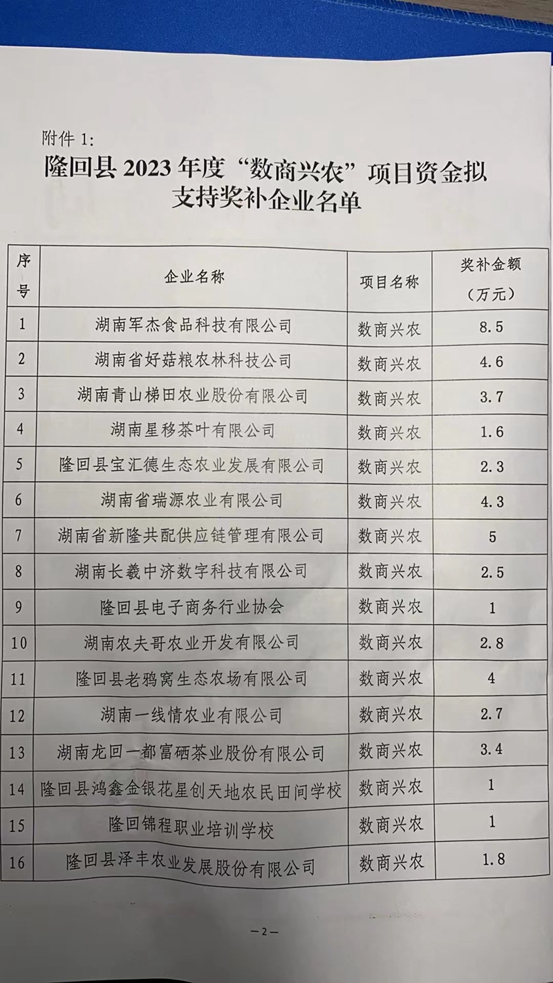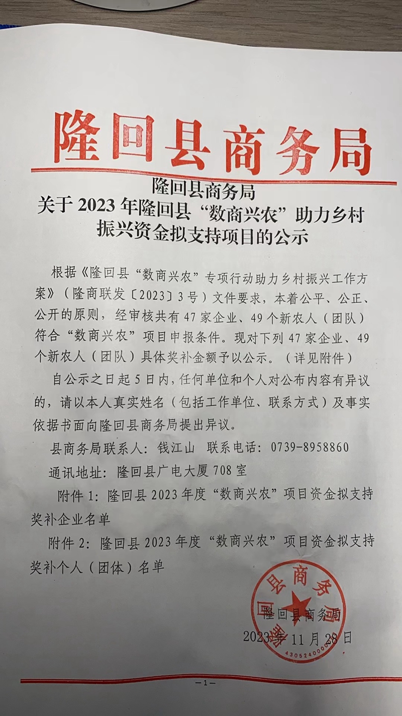 隆回县商务局关于2023年隆回县“数商兴农”助力乡村振兴资金拟支持项目的公示