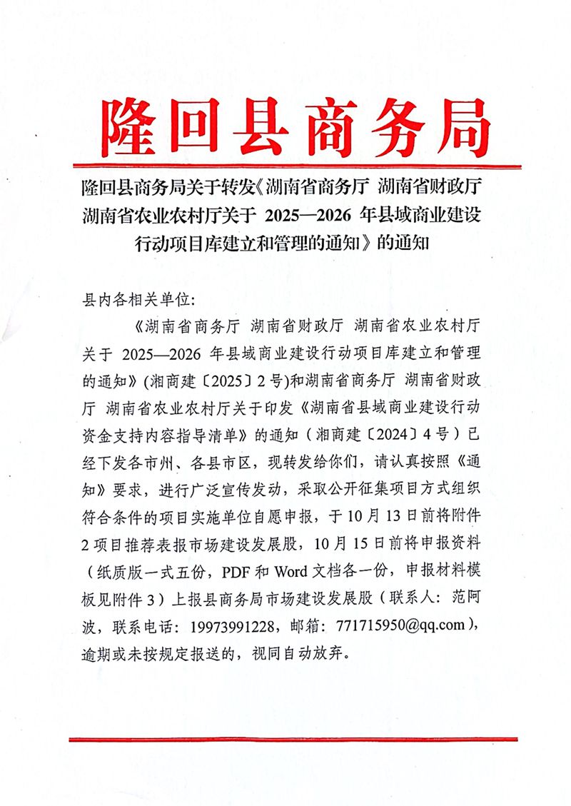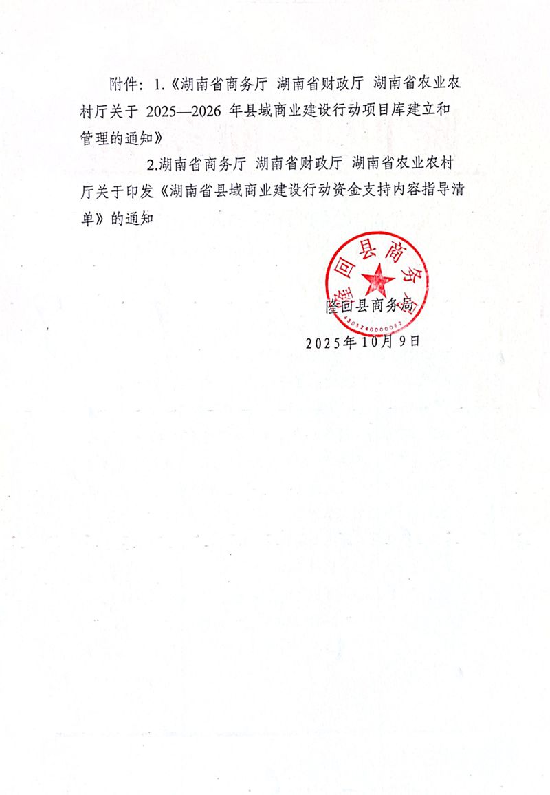 附件:1.湖南省商务厅 湖南省财政厅 湖南省农业农村厅关于2025-2026年县域商业建设行动项目库建立和管理的通知