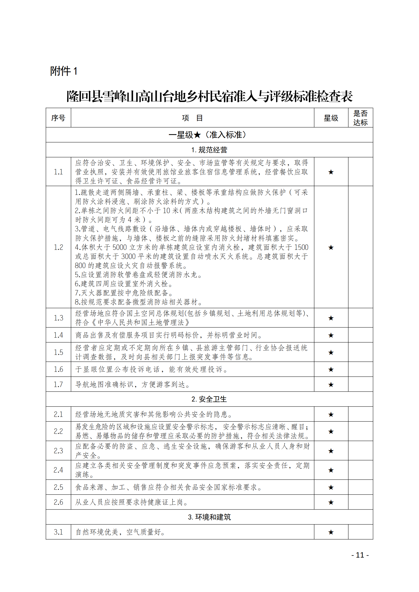 附件: 1.隆回县雪峰山高山台地乡村民宿准入与评级标准检查表