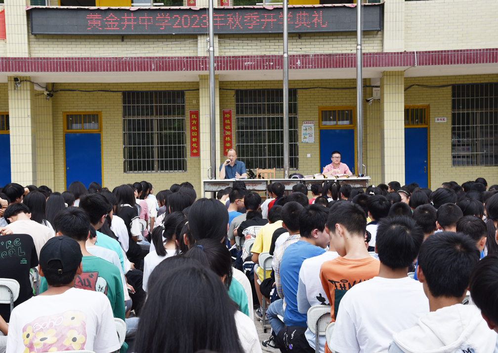 云天收夏色,木叶动秋声。告别了骄阳似火的酷暑假日,黄金井中学迎来了秋高气爽的崭新学年。9月6日上午,金石桥镇黄金井中学组织全体师生欢聚操场,共同参加隆重而不失庄严的开学典礼。