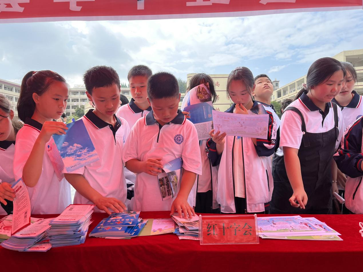 在活动现场,设立了《红十字生命教育点亮多彩青春》等科普宣传栏,隆回县红十字志愿者们为学生们送去了《急救自救手册》、《关爱下一代》、《铸牢中华民族共同体意识》等宣传册2000份。
