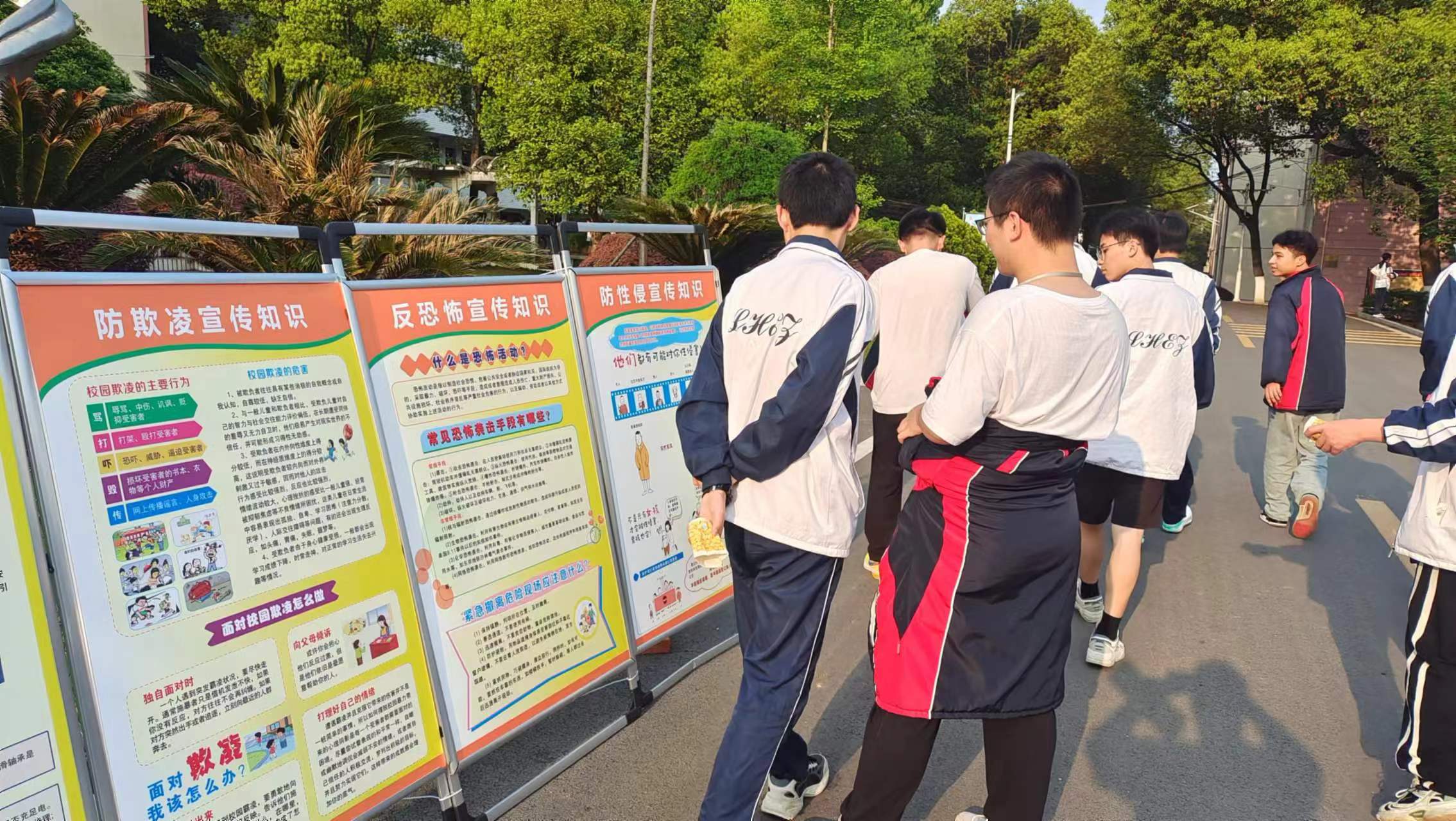 隆回二中还在校园显眼位置设置了国家安全法律法规、反恐防暴知识、交通安全常识等展板。师生们纷纷驻足观看,认真学习展览内容,增强了自身的安全意识。