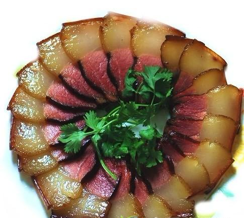 腊肉是隆回的一道美食,其具体做法是把新鲜的猪肉切成长块,每块3至5斤重。把食盐在锅中炒热,加拌适量的花椒粉。一块一块的用盐抹;然后一起腌在木桶里。过一个星期,就把肉从桶里取出,挂在火塘上面任其烟熏火烤。腊肉可以保二三年不坏。而且放得越久,味道越香。