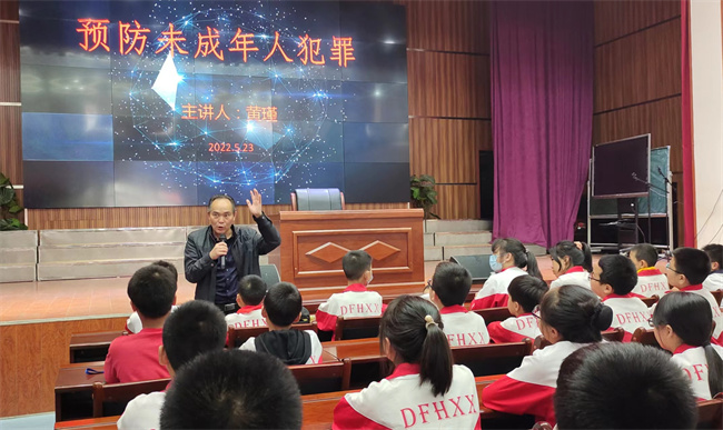 5月23日下午,隆回县关工委 “金秋”讲师团副团长黄瑾在东方红小学为学生们进行生动有趣的法制教育宣讲。