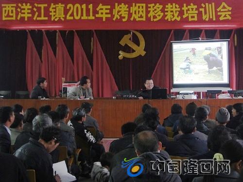 3月25日,春寒料峭。一大早,西洋江镇政府四楼大会议室内人头攒动,大家纷纷争抢靠前的座位,当天,该镇在这里举办由县两烟办与烟草公司组织的2011年第二期烟苗移栽技术培训班,全镇11个烤烟村的村干、培植员、驻村干部和150多名烟农参加了培训。
