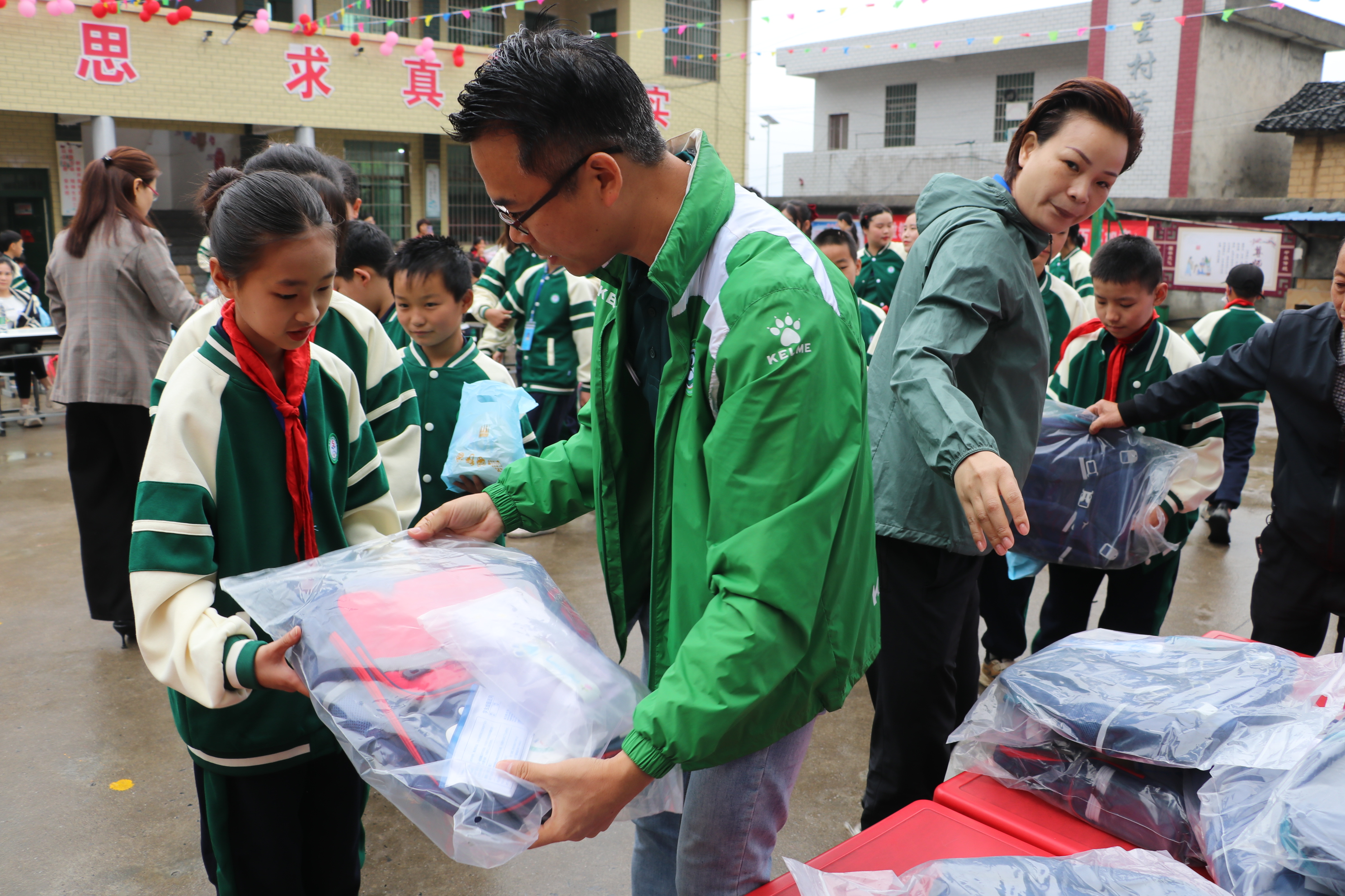 新书包、新课桌、新校服,一起做游戏……湖南省邵阳市隆回县岩口镇东风小学的留守孩子乐开怀。 4月19日,广东省佛山市志愿者来到该校开展“关爱山区留守娃”活动,为留守孩子赠送书包、校服、课桌等礼物,开展礼仪教育和娱乐活动。
