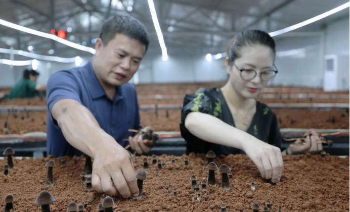 “没想到还么漂亮的蘑菇,这是我第一次见到。”5月26日,在隆回县桃花坪街道竹塘村姚家1组好菇粮黑皮鸡枞菌基地,一个小女孩高兴地摘了一个蘑菇给妈妈。这种蘑菇叫黑皮鸡枞菌。湖南好菇粮农林科技有限公司董事长刘和平告诉大家。
