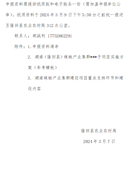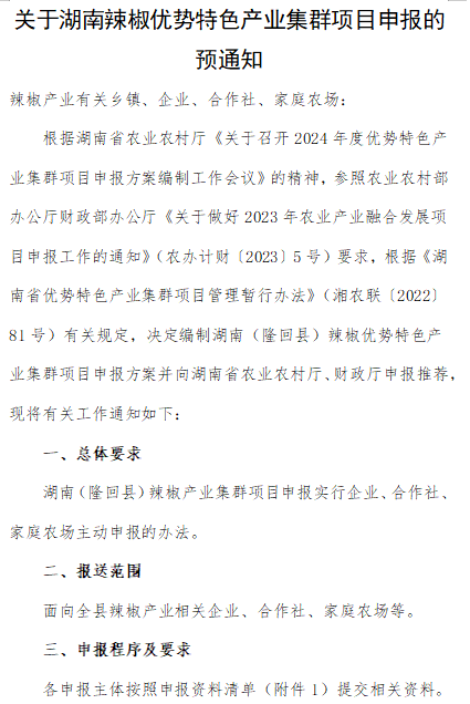 关于湖南辣椒优势特色产业集群项目申报的预通知