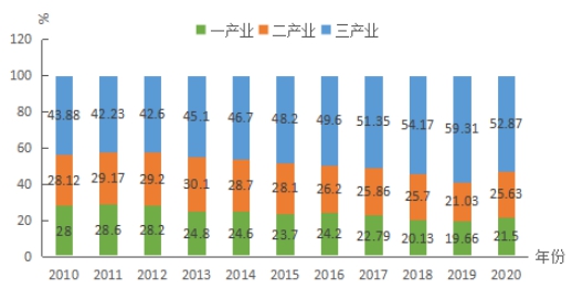 图2 2010-2020年三次产业结构变化趋势图